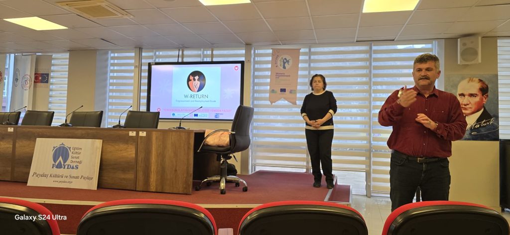 Paydaş Eğitim Kültür ve Sanat Derneği’nin ortağı olduğu Erasmus+ KA210 “W-RETURN: Women’s Empowerment and Reemployment Route” Projesi kapsamındaki eğitim , Kozlu Belediyesi Salonu’nda gerçekleştirildi.