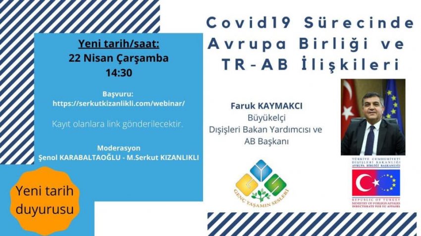 29 Nisan 2020 tarihinde ise Dışişleri Bakanlığı AB Başkanlığı Mali İşbirliği ve Proje Uygulama Genel Müdürü Sn. Bülent Özcan ‘ın katılımlarıyla gerçekleştirilen toplantıya katıldık.Çevrimiçi gerçekleştirilen toplantıda, yeni süreçle beraber Avrupa Birliği bünyesindeki gerçekleştirilen çalışmalar , proje sektörünün bu bağlamdaki rolü ve Sivil Toplum Kuruluşlarının önemi gibi konular ele alındı.Program çok verimli ve yönlendiriciydi. Sn. Bülent Özcan’a ,Moderatör Serkut Kizanlikli’ya ve Kastamonu Genç Yaşamın Sesleri Derneği ‘ne Paydaş Eğitim Kültür ve Sanat Derneği olarak teşekkür ederiz.